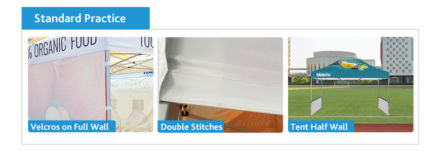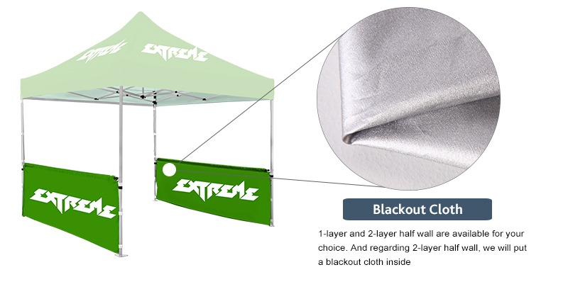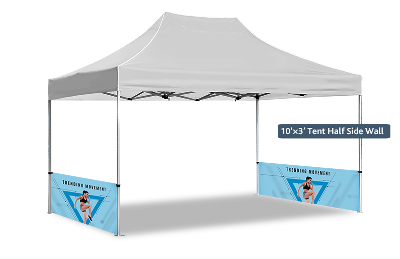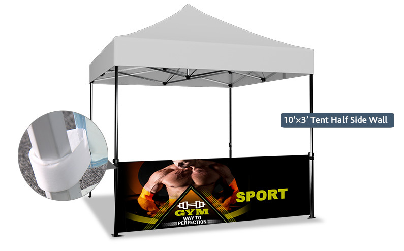 The half wall is always used as a side wall that can be freely matched to suit your different occasions, such as outdoor promotion store and indoor trade show. Each of our half walls is designed to match your tent top. Whenever you choose a couple of side wall for your tent kit, you will receive a double advertising effect.